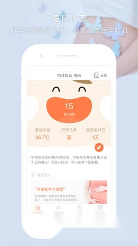 2、掌握月经周期:通过客观采集基础体温,以图形化呈现与科学分析相结合的方式,清晰展示月经的各个阶段,帮助您提前为经期到来做好准备。