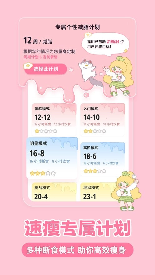 当下备受关注的轻断食方案这里都有,像16+8、12+12、14+10、20+4、18+6这些热门模式,还有经典的5+2轻断食,涵盖了各种火爆的轻断食计划,能帮你短期快速瘦身,让多余的肉肉无处遁形~