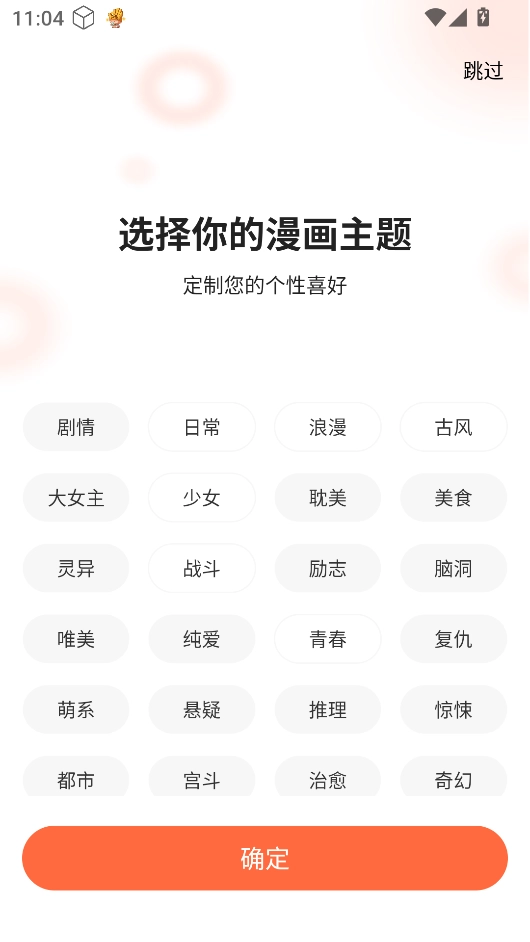 2、依据个人喜好挑选性别标识以及感兴趣的漫画类别,系统会以此为依据进行智能内容推荐。