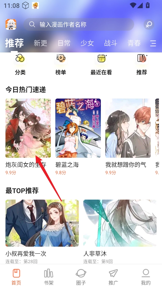 3、在首页,用户能够借助热门推荐、详细分类或者搜索栏,快速找到目标作品。