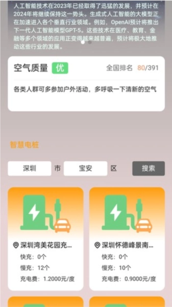 充电桩智能查询功能:您只需选择所在城市,智慧充充就能快速帮您找到附近的充电桩。