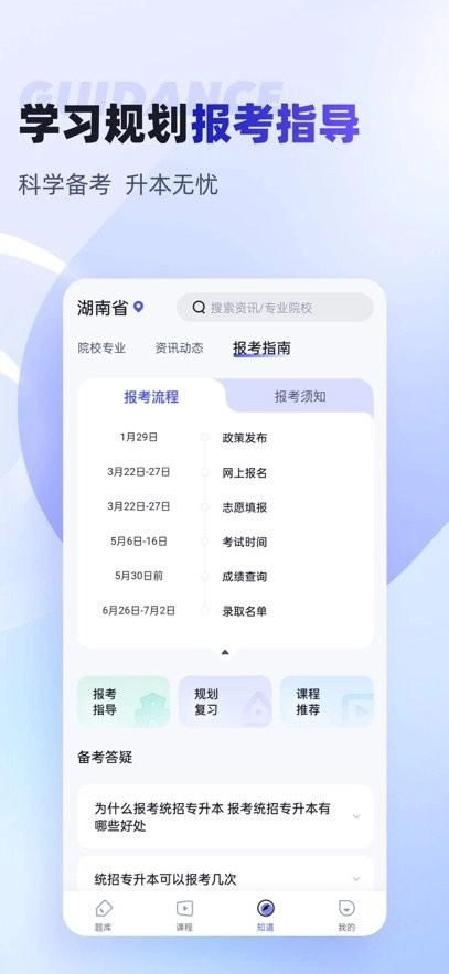 【专升本院校与专业指南】 涵盖全国专升本院校及专业的全面解析,为考生提供院校检索、招生章程、考试大纲、院校专业对比、优势专业、AI智能匹配适配专业与院校等服务,一站式助力考生精准选择心仪的本科院校与适配专业。