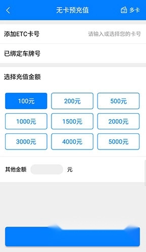 3、无卡用户可选择预充值方式,输入ETC卡号信息后,选定充值金额并点击立即支付,支付成功即完成充值。