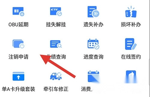 1、打开齐鲁通APP进入ETC营业厅后,在页面中找到“注销申请”的选项。