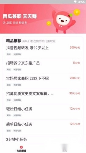这里的兼职岗位覆盖面特别广,从服务员这样的基础岗位到文案策划这类专业职位都有,兼职内容十分全面,用户可以结合自己的兴趣和岗位要求,找到心仪的兼职工作。这里的兼职门槛很低,只要通过身份信息认证就能找工作。西瓜兼职倡导用户自主选择满意的工作,而非由公司或企业挑选用户——因为我们始终相信每个人都是独一无二且潜力无限的。软件内所有兼职信息都经过严格筛选审核,确保百分百真实,适合各类人群。无论你是想赚钱,还是想锻炼自己,这里都是绝佳选择,有需要的用户别错过!