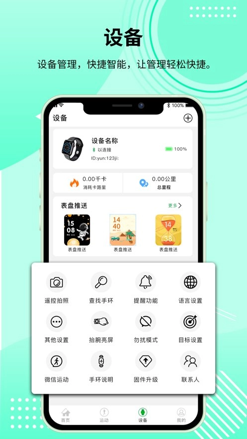 帮助用户进行设备的管理,随时查看穿戴设备的状态