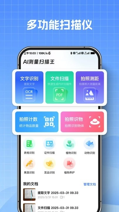 AI测量扫描王是一款依托AI智能图像技术打造的拍照识别工具,能助力用户轻松探索并学习自然界的多元魅力,既是功能强大的多用途扫描仪,也是内容丰富的知识宝库。它不仅具备文字扫描、文档转换、拍照计数、实时测距、证件识别等实用功能,还可快速识别两万余种常见植物、近八千种花卉、八千种动物、九千种菜品以及近千种蔬果。它能帮助纸质文件打破局限,通过便捷扫描实现自动优化,让文件整理更具智能化,适用于办公室白领、植物与园林爱好者、家长、动物爱好者、职场人士、美食爱好者、旅游爱好者、摄影爱好者以及所有热爱生活的人群。