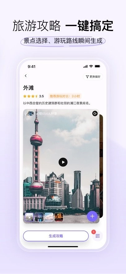 2. 借助先进的AI算法,既能给出精准的目的地推荐,又能助力行程的串联规划,让用户尽情享受轻松无忧的旅行体验。