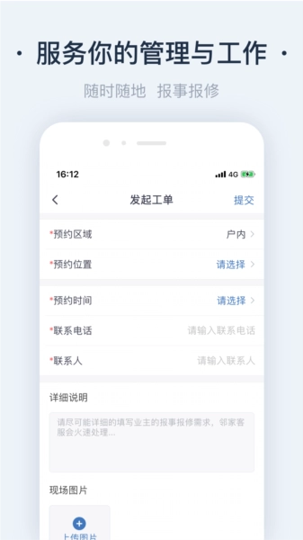 1、高效便捷的申请审批流程:无论是装修申请还是其他各类服务需求,都能快速完成提交与审批。
