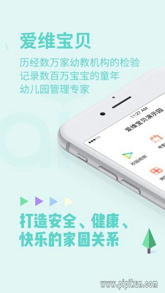 "爱维园长"是爱维继"爱维宝贝""爱维教师"之后推出的又一款移动客户端校园互动软件,它将智能校园功能整合到移动端,既便于园长开展移动式办公与园务管理,也方便老师随时随地与学生互动、家长及时与老师和孩子沟通,更能让孩子在家长与老师的密切关注下健康成长,实现从家到学校的无缝对接。通过在校园中推行移动式办公和园务管理,助力园长先实现工作轻松高效,再迈向事业成功。