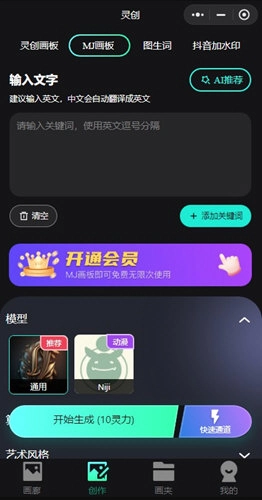 2、灵创为用户配备了专业权威的AI绘画功能,涵盖各类丰富的AI绘画模板,还支持用户自由挑选绘画风格。
