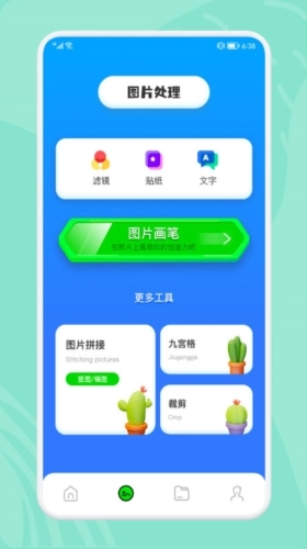 2.图片处理:包含滤镜、贴纸的添加,为图片搭配文案,以及图片拼接、九宫格排版等功能;