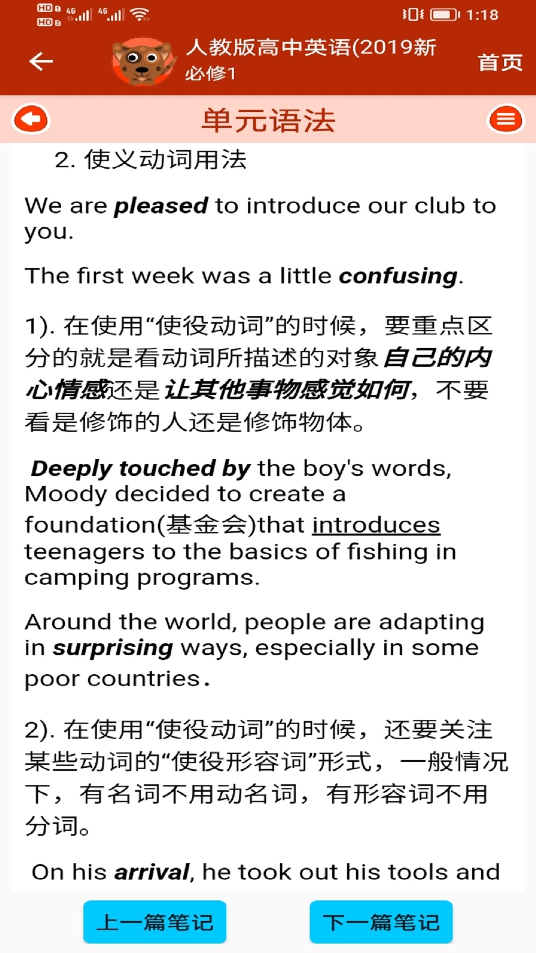 5.在语法解析模块中,找到当前教材对应的语法点,能查看该语法点的讲解、例句以及练习等相关内容