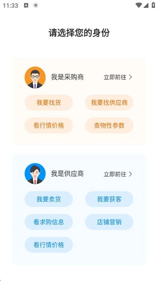 3、登录成功后,依据您的实际角色(比如是采购方或者供应方)来选择相应的身份。