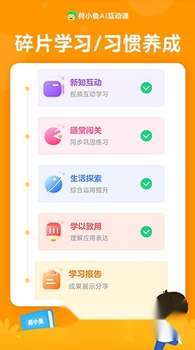 个性化学习报告:荷小鱼可自动生成专属学习报告,呈现孩子的学习天数、进度及成绩分析等重要信息。这既能帮助孩子了解自身学习情况,也能让家长更清楚地掌握孩子的学习动态。