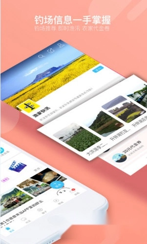 2、钓鱼场板块:涵盖钓场农家乐汇总、钓场实时信息联盟、垂钓专属区域以及探钓场地分区等内容。