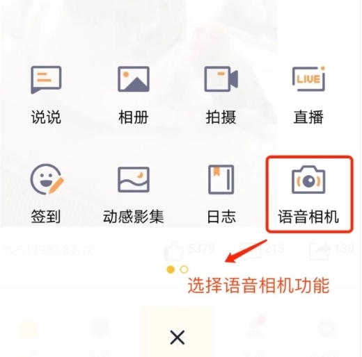 3、使用该功能需要借助QQ空间,点击加号添加语音相机后即可发送语音。