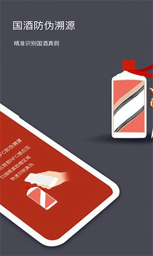 4、带有NFC功能的贵州茅台,可通过茅台镇国酒瓶盖上的芯片验证功能来辨别其真伪。