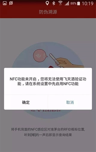 1、在本站找到并打开贵州茅台相关页面,首次打开时会提示你需要先开启设备上的NFC功能;