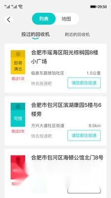 会详细统计个人周边的回收机器,并实时提供路线导航指引你前往目的地