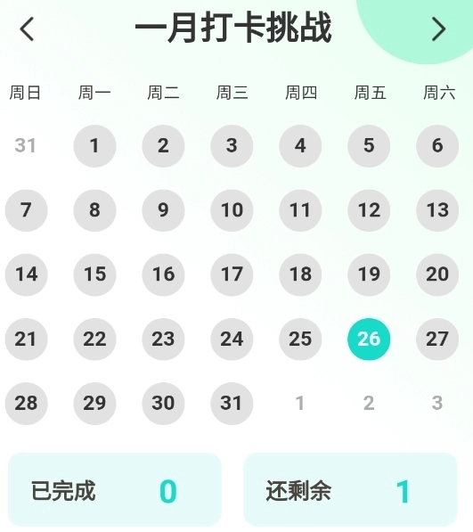 然后你可以在打卡挑战中,查看自己的挑战日历。