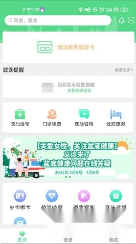 2、办卡与绑卡:申领电子就诊卡,或绑定已有的实体就诊卡,以便开展预约挂号等服务。