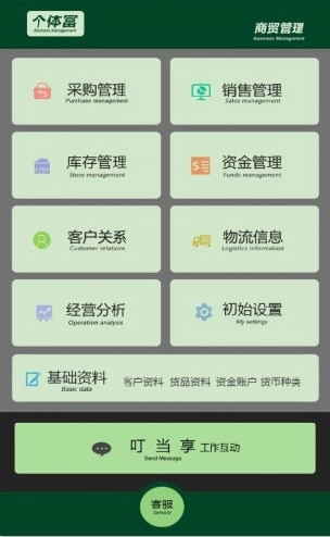 个体富进销存作为一款覆盖全流程的进销存管理应用,精准把握个体商户的实际经营需求。它不仅能简化复杂的账务处理步骤,还配备了智能化的数据分析工具。该应用支持多渠道进货信息记录,可智能追踪库存变化,保证商品数据实时精准。在销售端,能快速生成销售单据,自动核算销售额与利润,切实提升工作效率。针对客户关系维护,个体富进销存拥有完善的管理系统,助力商家构建稳定的客户群体,增强顾客满意度。另外,其强大的经营分析功能让用户能清晰掌握业务动态,制定科学的经营策略。凭借安全、高效、便捷的特点,个体富进销存致力于为每位个体经营者提供更快速、更高效的经营管理体验。