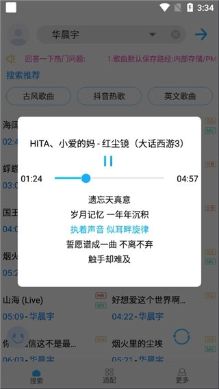 2、还能歌词以及为所有的去个适配歌词等等,好用。