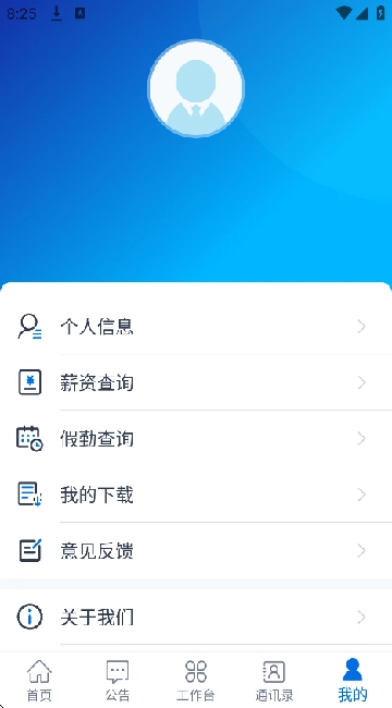 2、通讯录:可按部门或姓名快速查找同事的联系方式,支持直接拨打电话或发送消息。