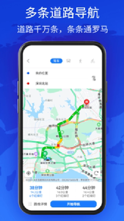 2、支持多种交通方式的灵活切换,用户可根据需求选择驾车、步行、地铁、公交等出行模式,从而快速获取抵达目的地的最优通行路线。