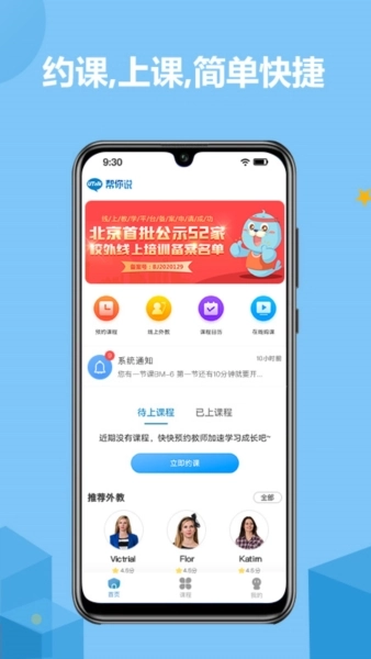 帮你说把可汗学院翻转课堂的理念深度融入线上教学,配备学员熟悉的外教,让他们在实体课堂所学的内容能在软件上得到全面的回顾与巩固。借助移动学习方式,只要有一部带微信的手机或平板,就能和专属外教开展一对一在线学习。