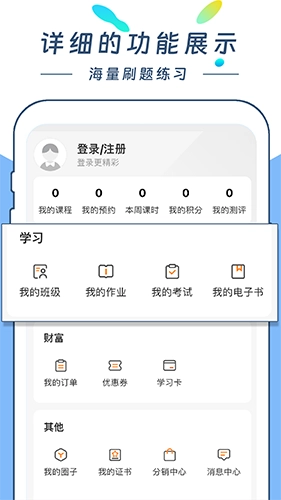 5、提供在线测试、题库练习等多种学习模式;