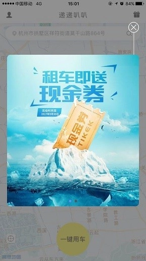 新用户福利来啦!刚注册的用户可以免费租车4小时,而且每次租车都会赠送优惠券哦~