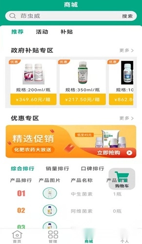 汇集了推荐、活动、补贴、农药和农资等服务模块