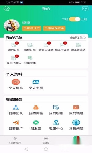 信息认证功能支持用户在线添加个人技能并完成认证,助力您通过线上接单实现创收。