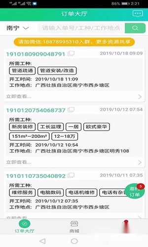 搜索订单时,可直接依据工作地点、工种等信息来查找符合需求的订单。