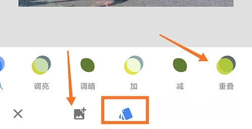 2、进入功能界面后,在底部找到三个选项,点击第一个“添加图片”,接着选择第二个选项中的“重叠”功能。