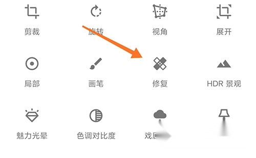 1、打开图片之后选择工具栏目中的修复按钮;