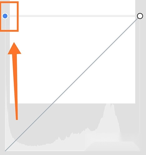 1、借助工具栏打开snapseed的曲线界面,把左下角的圆点拖拽至最顶端,使图片呈现白色;