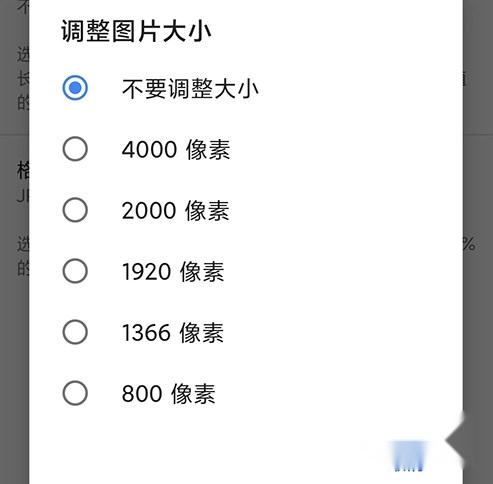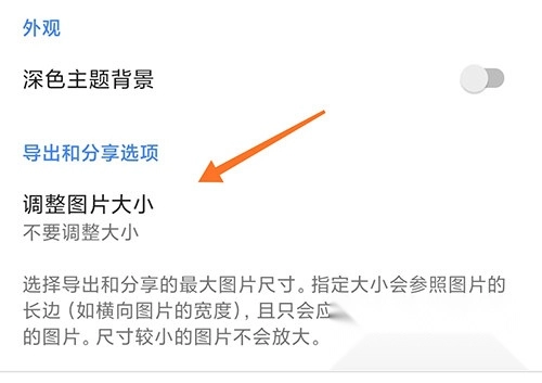 2、进入设置页面之后,选择调整图片大小;
