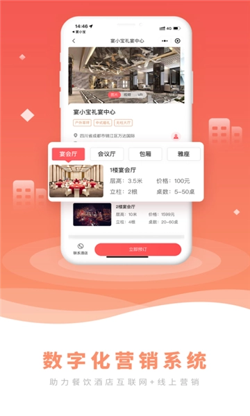 数字营销系统集成:整合VR全景、线上预订等功能,助力宴会酒店搭建私域流量体系。