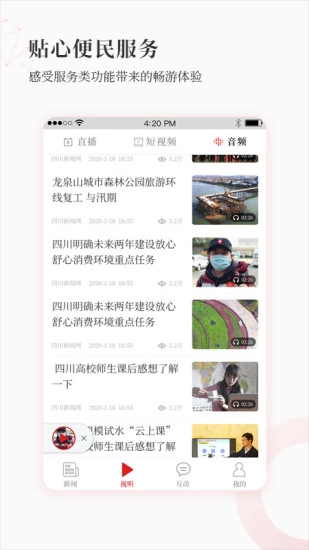 2、本地视听资源丰沛:汇聚四川本土的精彩直播、短视频与音频内容,助力用户通过多元形式感受四川文化的魅力。