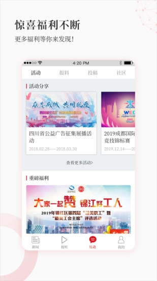 3、活动参与便捷:大四川应用支持本地公益活动与竞赛的在线报名,使每一位用户都能轻松参与自己感兴趣的活动。
