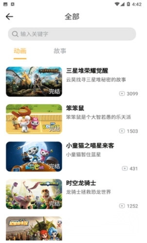 2、配备了功能强大的搜索引擎,支持通过关键字一键检索,能让你瞬间找到所需的动画片