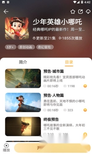 功夫动漫剧场是一款十分实用的视频播放软件,平台汇聚了海量儿童动画资源,不仅更新及时,支持在线观看,还有众多原创儿童动画片可供选择,精彩内容等你来发现。软件依据动画相关规则优化观看体验,按年龄段标注了各动画的推荐观看年龄,孩子们在观看动画的同时,还能学习知识,接触到更多有趣的内容。