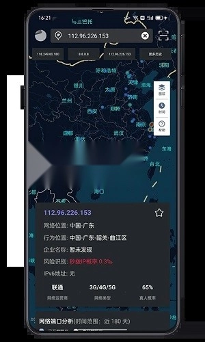 IP真人概率检测:借助大数据与人工智能算法,全面剖析IP的各类属性,并判断该IP产生的流量是否涉及钓鱼、作弊、攻击等异常行为,从而为所查询的IP提供风险预警提示。