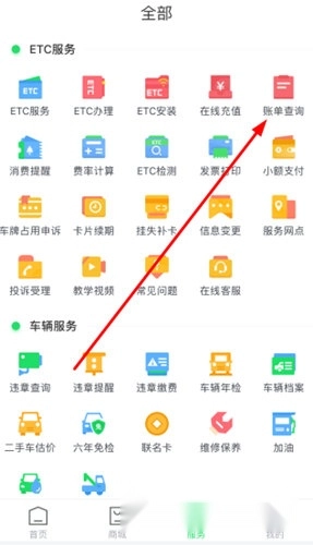 1、进入“服务”界面后,在该界面中点击“账单查询”选项。