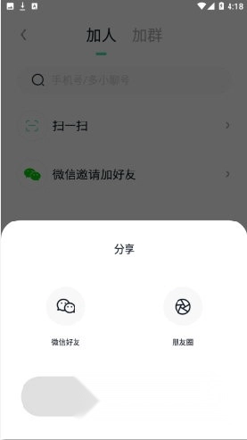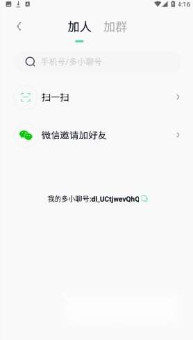 2、接着在“加人”界面,我们可以输入对方的号/多小聊号,也可以通过扫一扫或者微信邀请的方式来添加好友。
