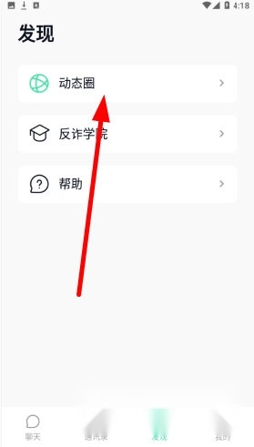 1、进入多小聊的“发现”界面,然后在这个界面点击上方的“动态圈”。