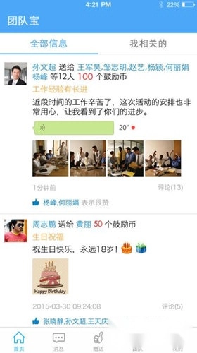 1.进入首页后,就能看到所有团队发布的动态,还可以查看每条动态的详细内容。